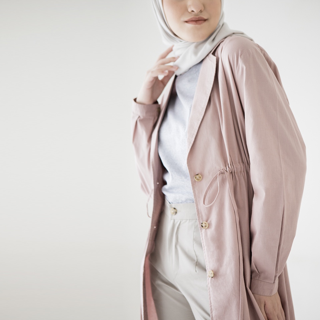 Dusty Rose Mega Parka by Aska Label - Outerwear parka katun wanita dengan kancing depan warna dusty pink