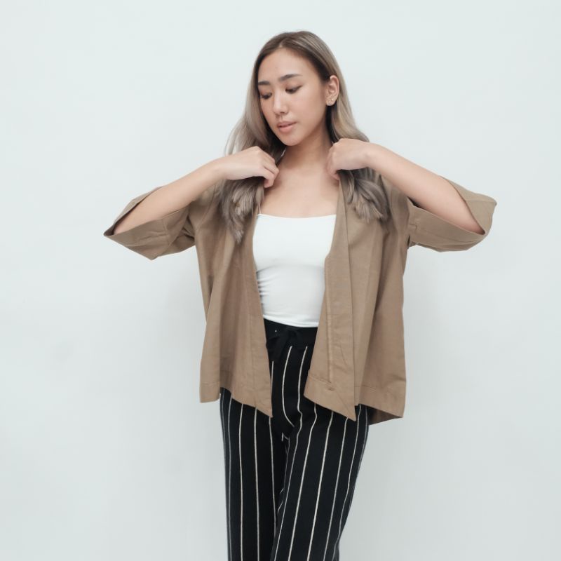 Orimoza Long cardi Outerwear wanita bahan Mosscrepe BELLE by Orimoza