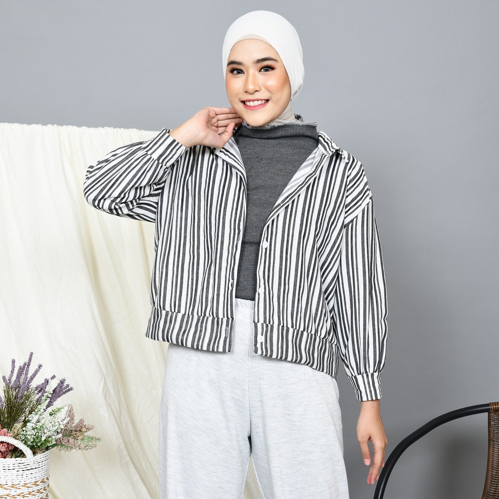 Harga Mybamus Tevy Fleece Jacket - Outer Hangat Wanita - Luaran Kerah Kekinian Stripe