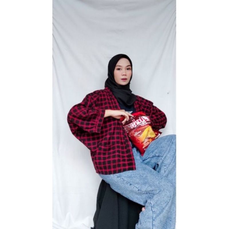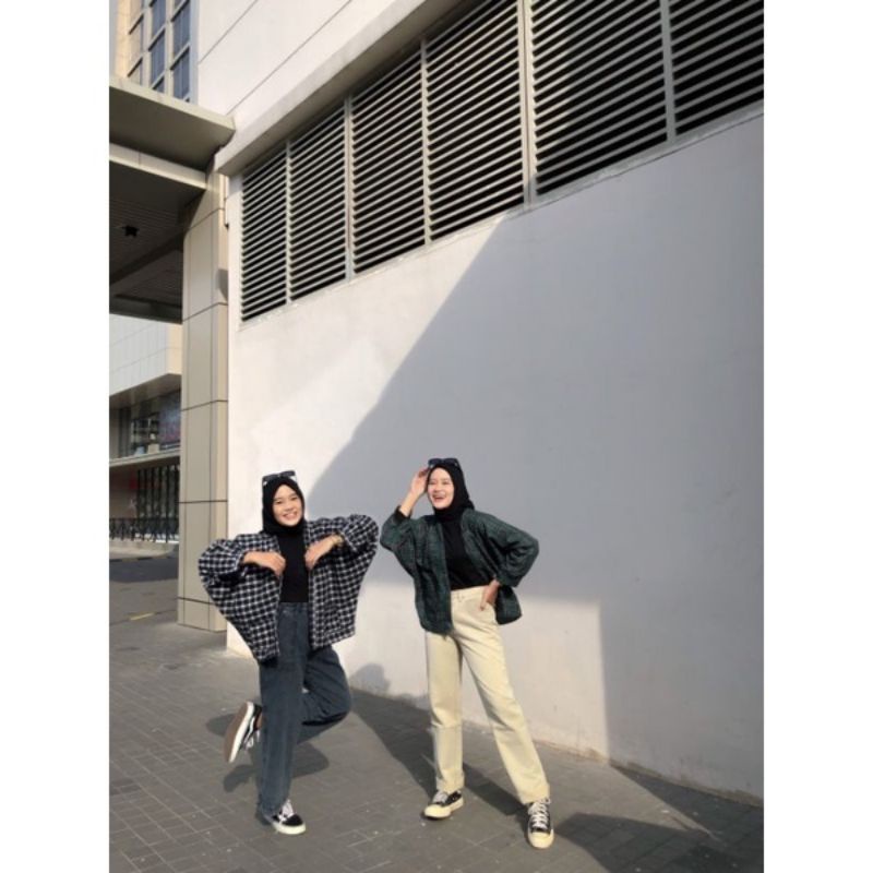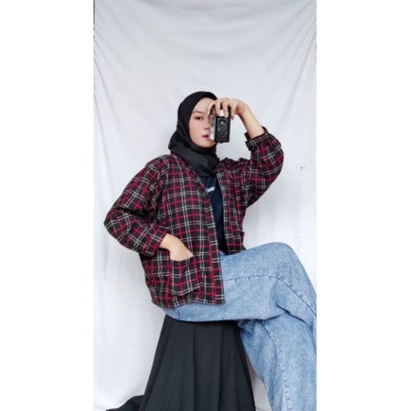 OUTER WANITA FLANEL OVERSIZE OUTER | KOTAK-KOTAK KEKINIAN TERBARU 2021