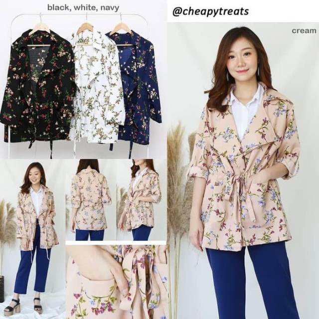 Harga Basic Floral Outer Parka Tied Blazer Bunga Luaran Jaket Keren Stylish Santai Adem