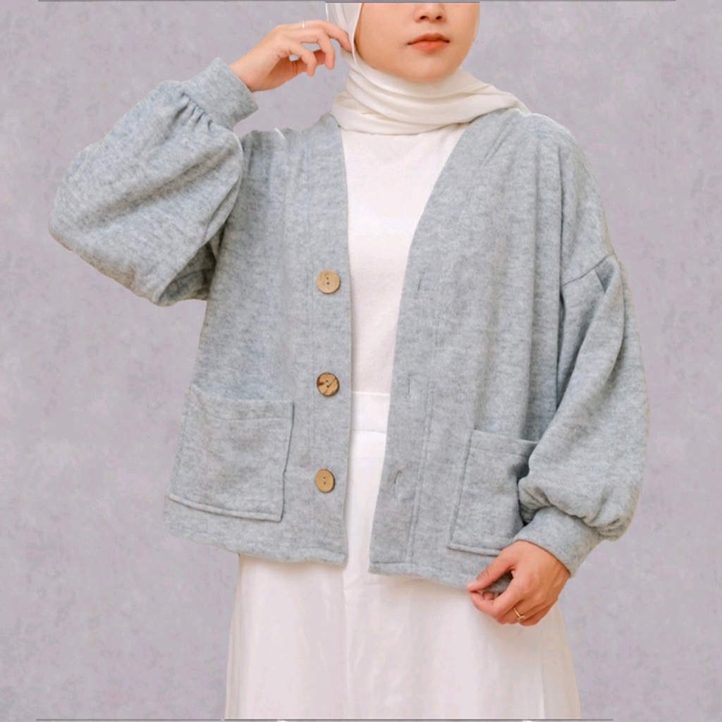 Harga Bisa Cod Outer Cardigan Knit Outwear Wanita Outfit Hijab Sweater Kardigan Flecee lengan Puffy