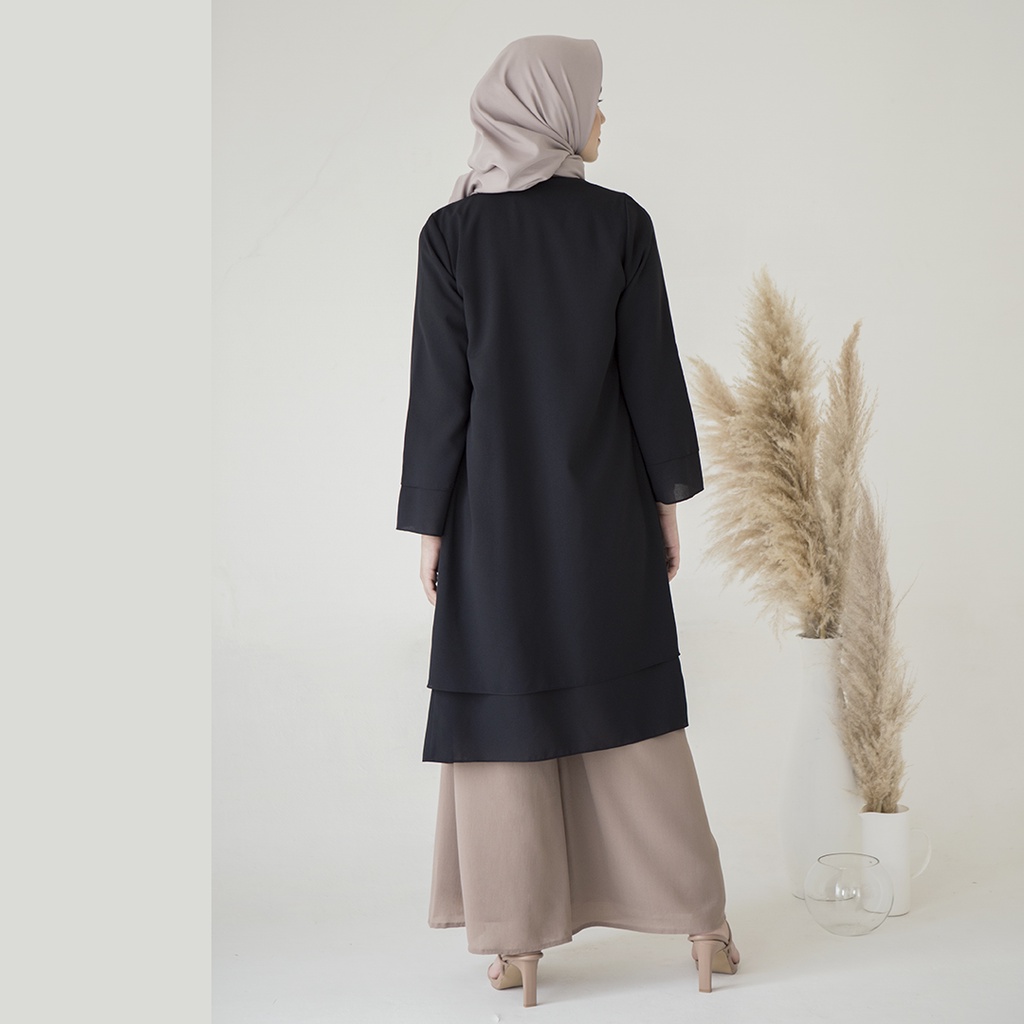 Alasan kenapa harus beli Black Kandira by Aska Label - Outerwear wanita panjang tipis double layer warna hitam bahan crepe sekarang