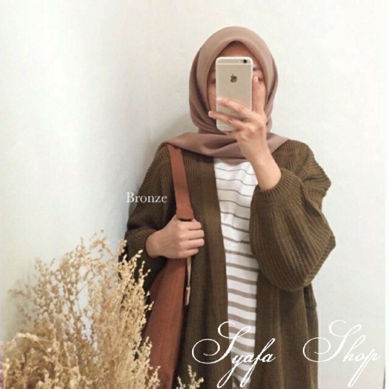 alnita Ivy Outer Wanita Cardigan Polos Outwear Muslimah Bahan Monza Kardigan Panjang Polos