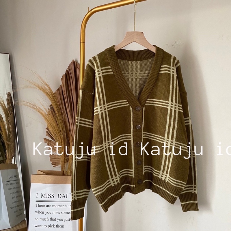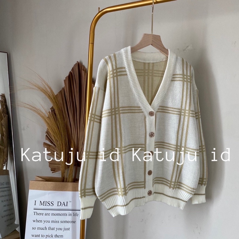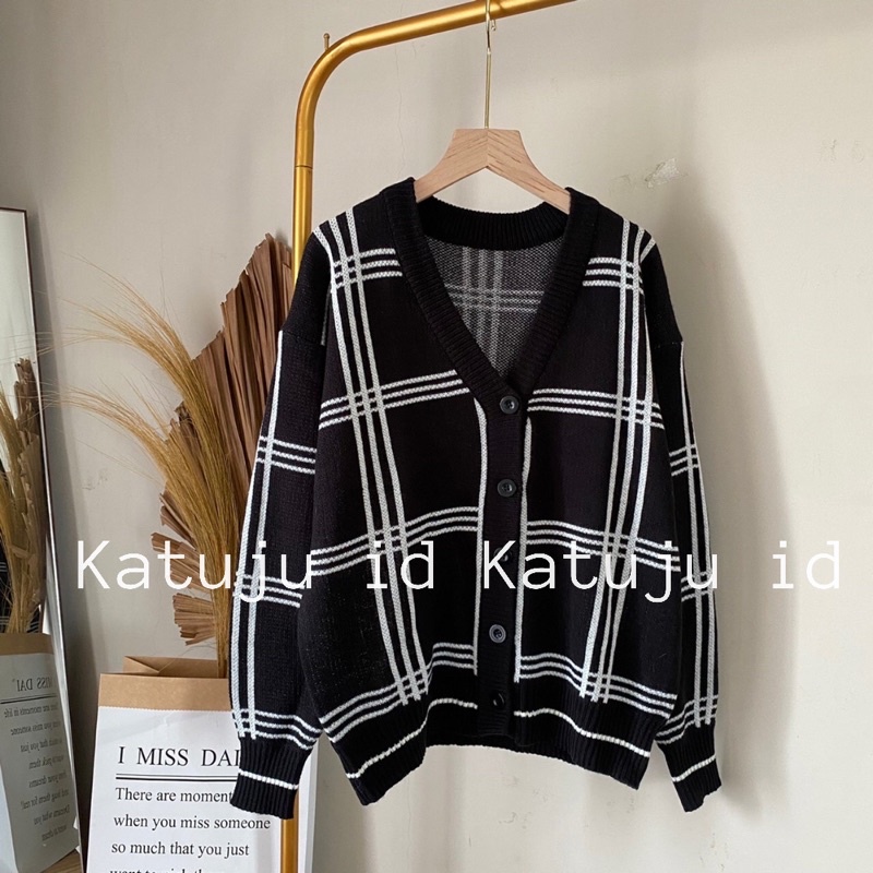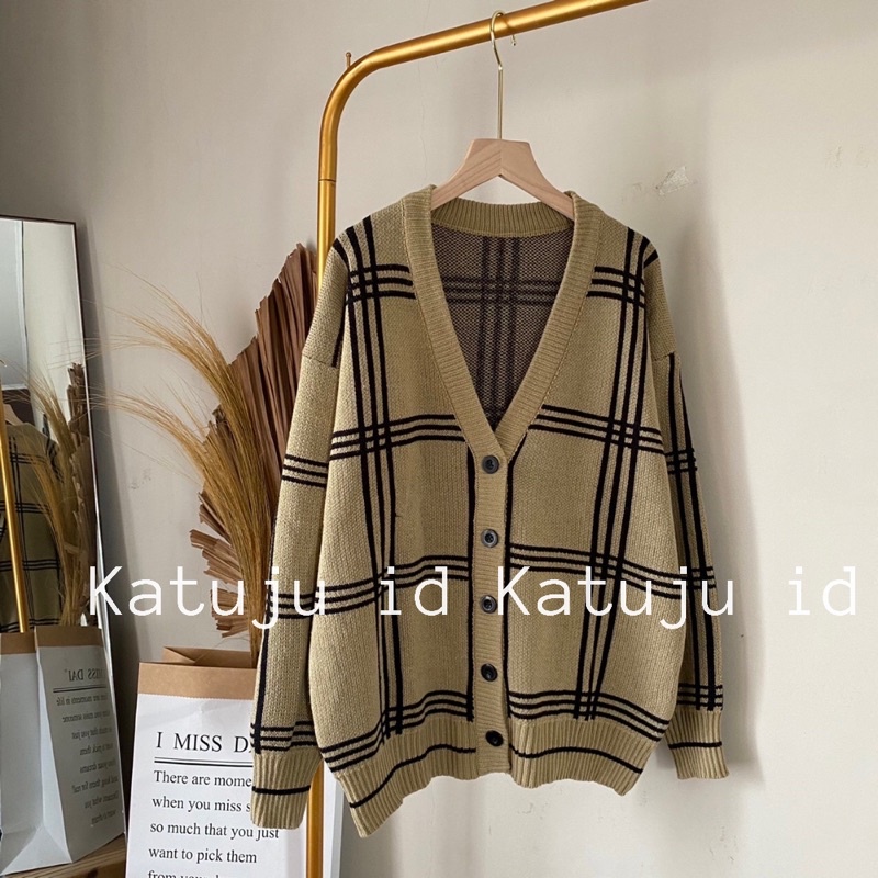 Harga CARDIGAN RAJUT MINGYU OVERSIZE KANCING SQUARE | OUTER OUTWEAR KNIT MOTIF GARIS TEBAL