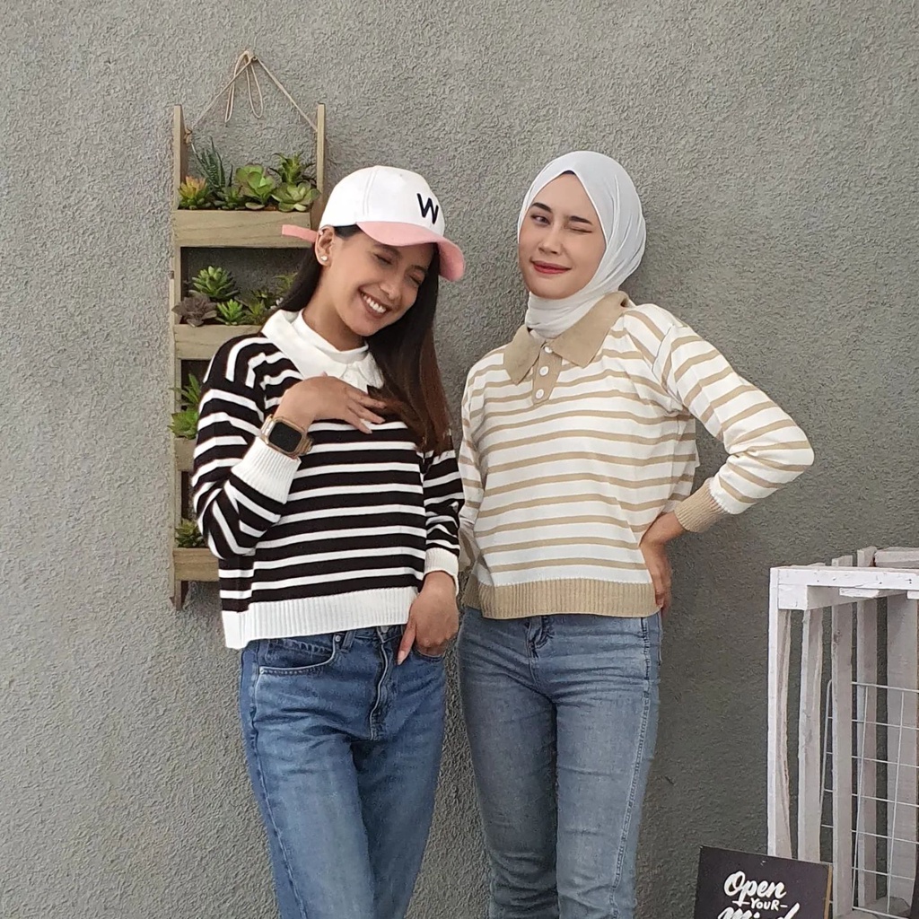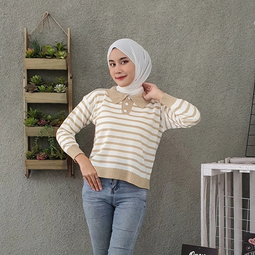 Kekurangan - Kekurangan membeli [CYC | COD] REALPICT | Outwear Dhabie Stripe Sweater Knite | Rajut Outer Wanita Trendy Murah di Toko ini