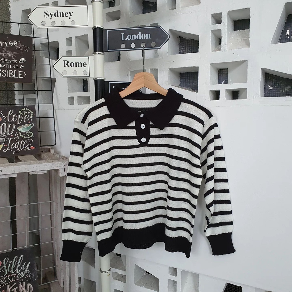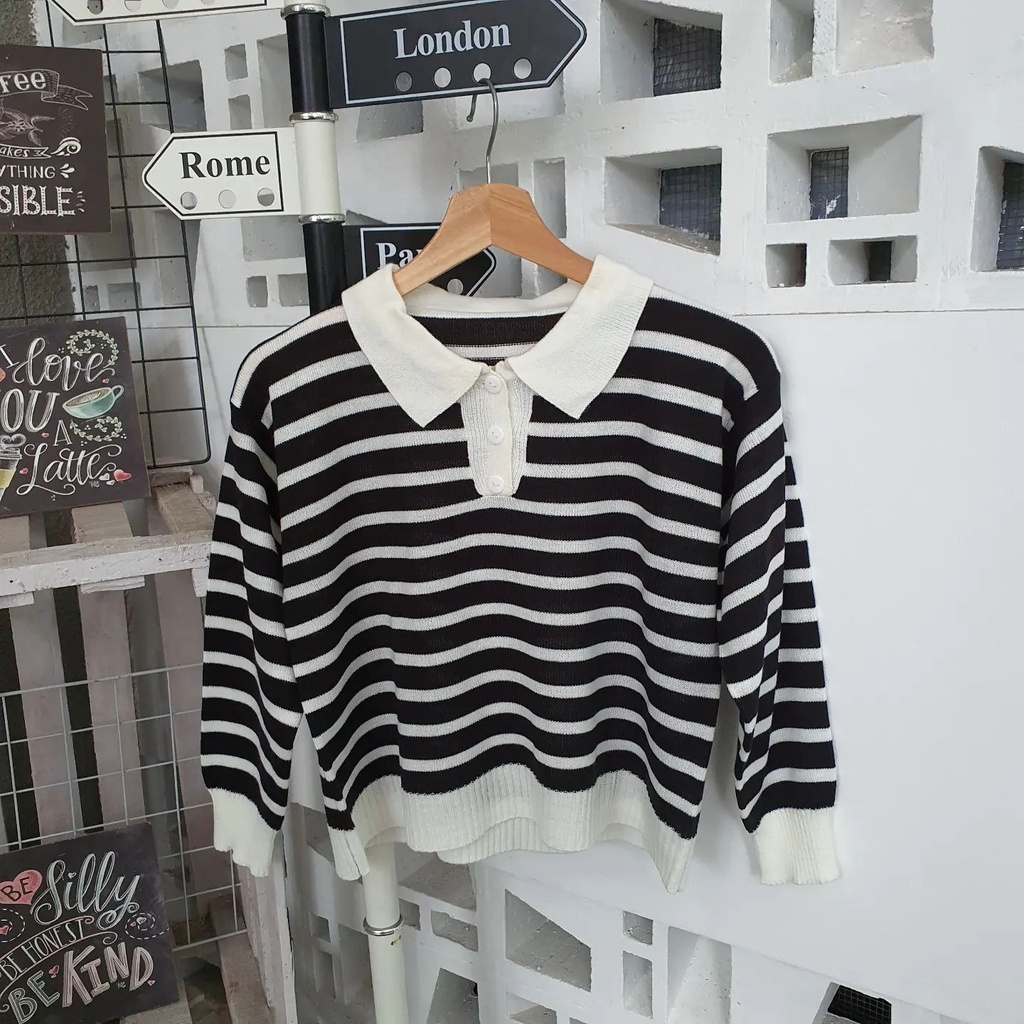 Harga [CYC | COD] REALPICT | Outwear Dhabie Stripe Sweater Knite | Rajut Outer Wanita Trendy Murah