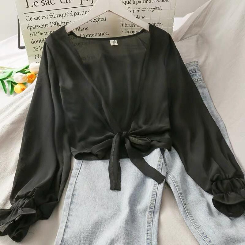HanaFashion - Lecia Tied Long Sleeve Cardigan Outer Wanita - SB137