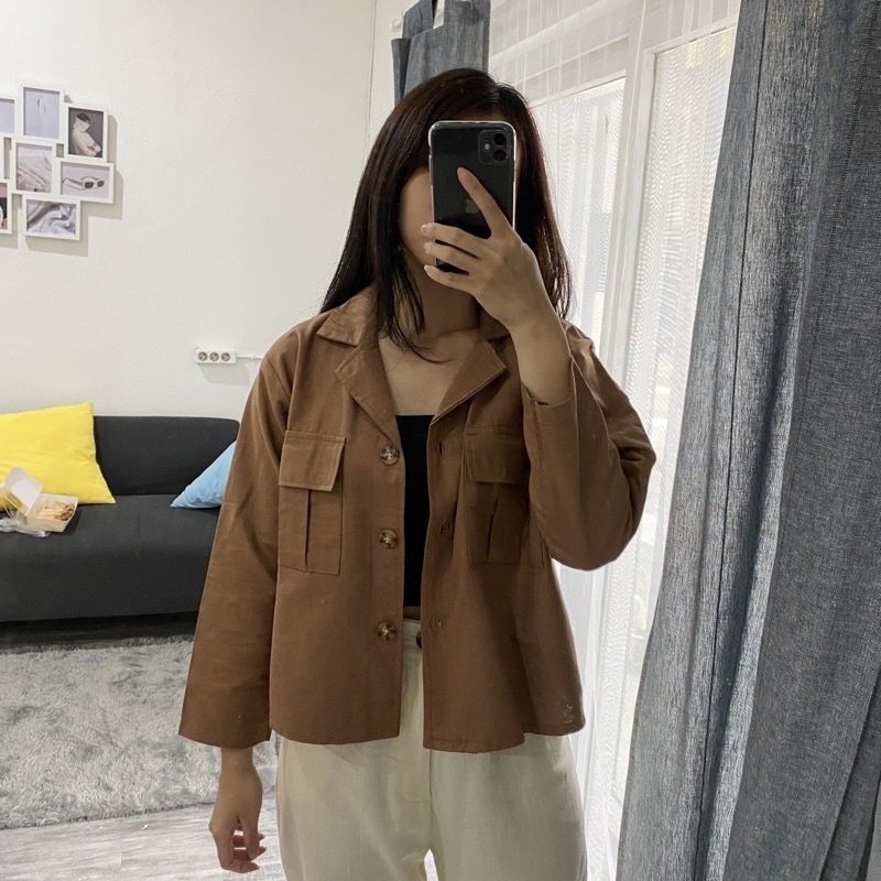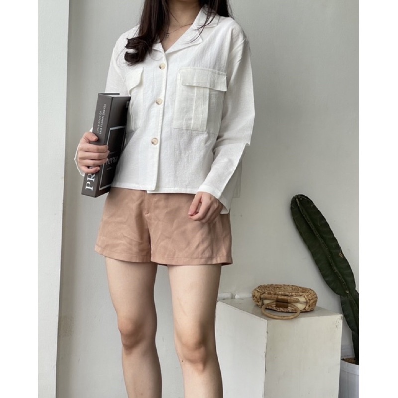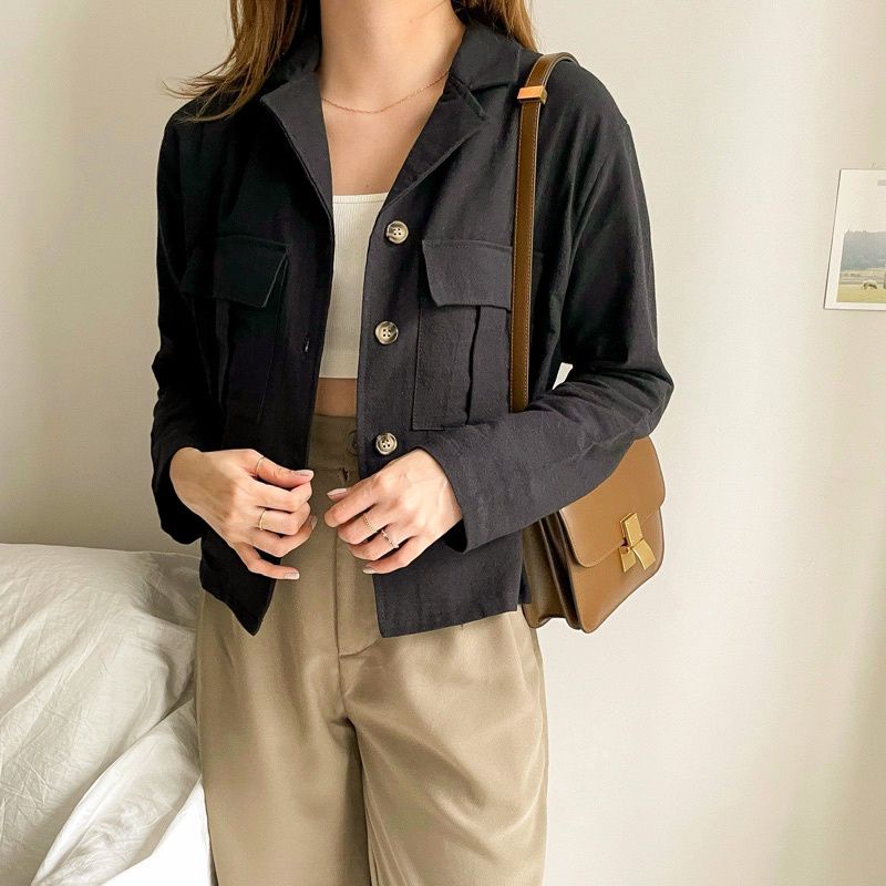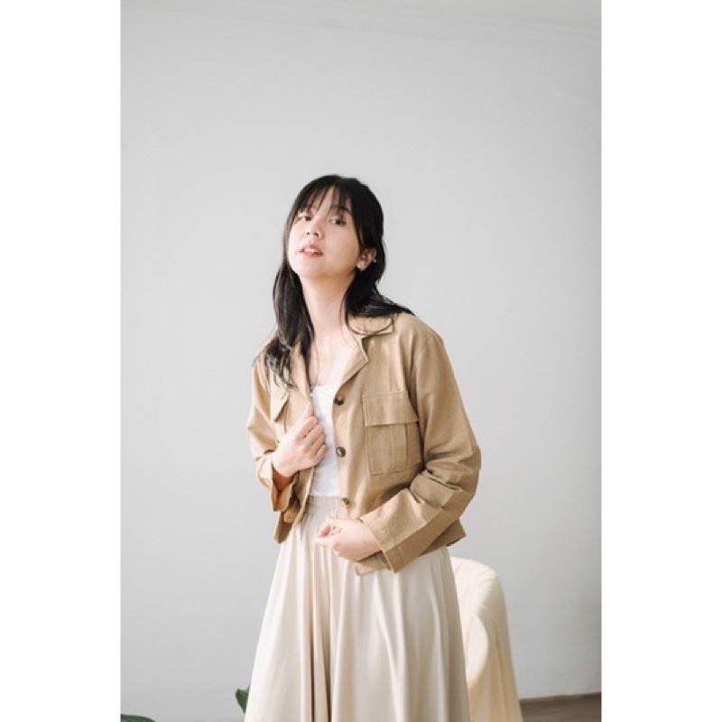 Jaket Wanita Korea / Busan Jaket / Seoul Crop Top Linen / Jaket Linen / Cardigan Linen / Outwear Cardigan / Outer Linen