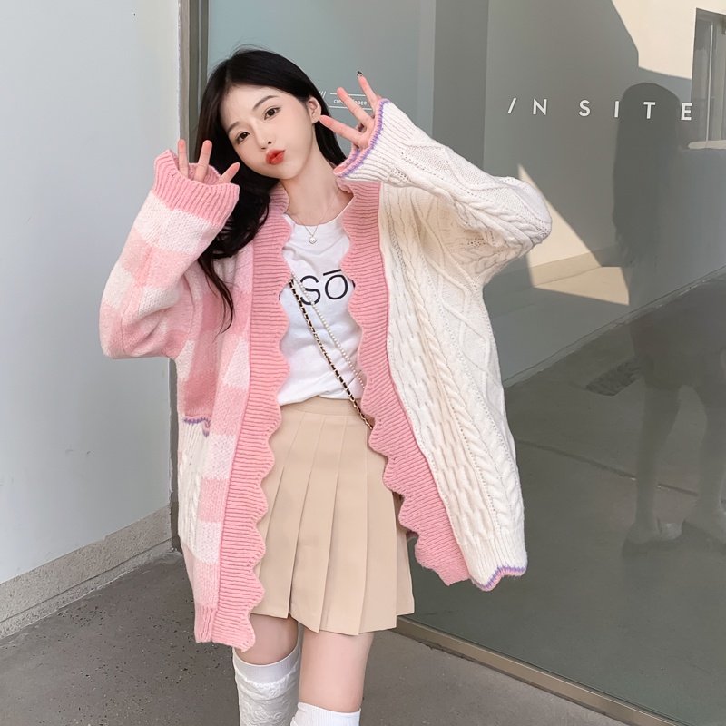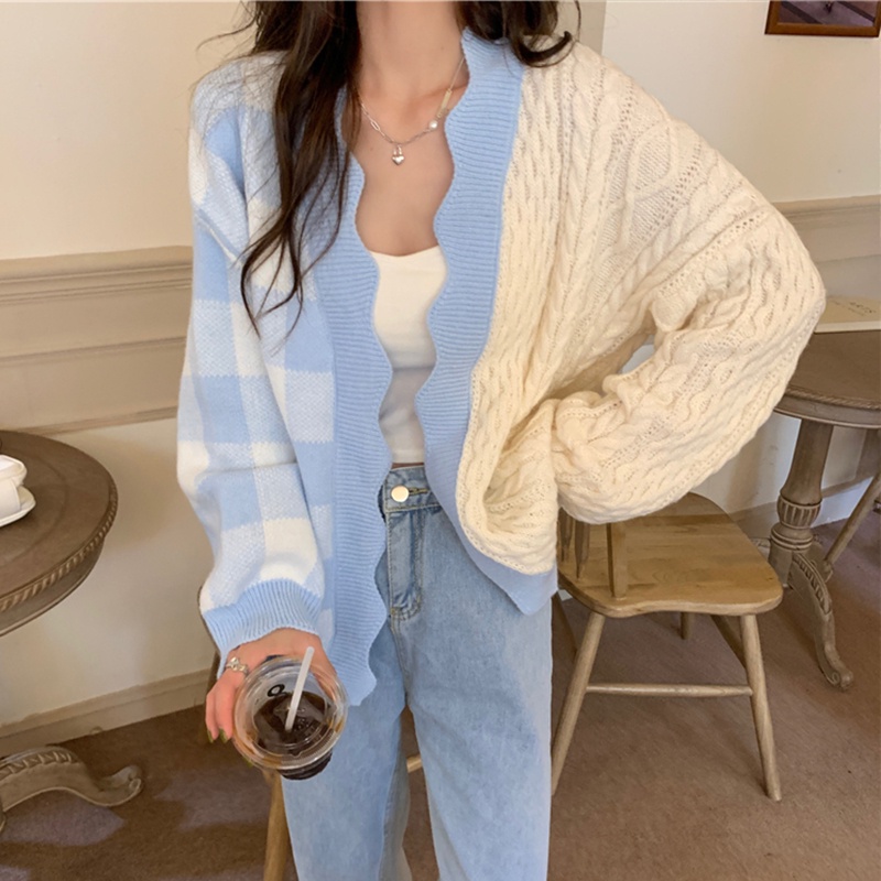 Kekurangan - Kekurangan membeli ODY72 Hani Cardigan Two Tone Knit Korea Rajut Gingham Outer Import di Toko ini