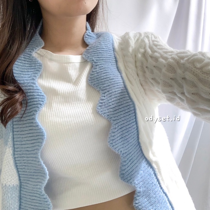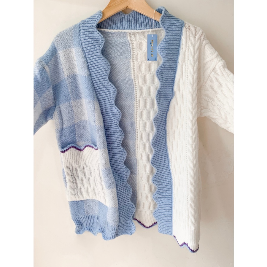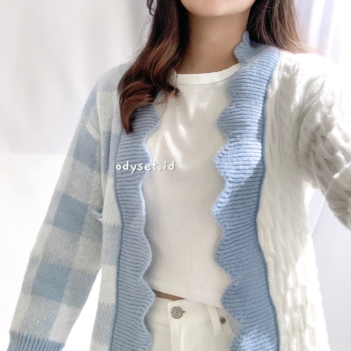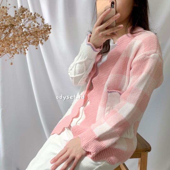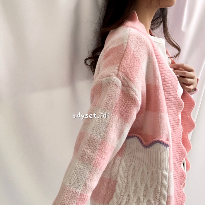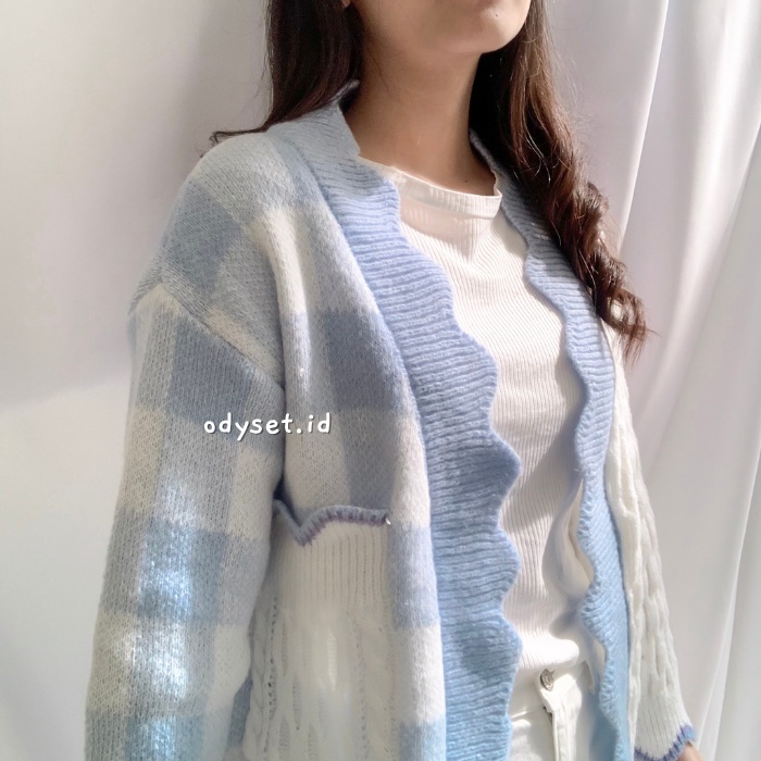 Alasan kenapa harus beli ODY72 Hani Cardigan Two Tone Knit Korea Rajut Gingham Outer Import sekarang