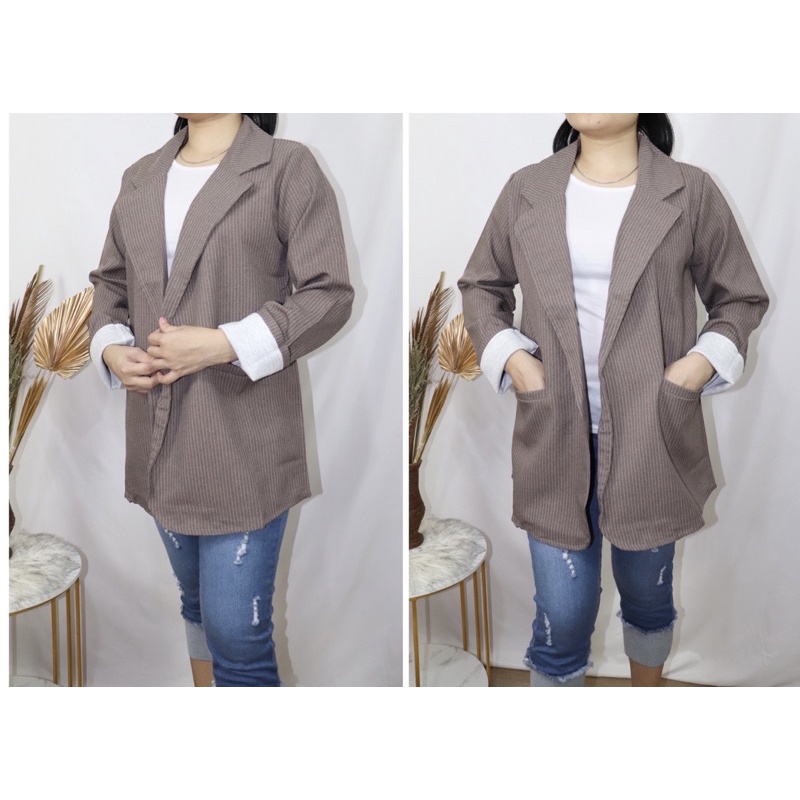 sky93 Cardigan wanita basic combi salur | outer wanita basic