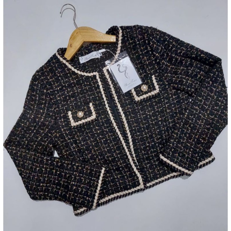 Kekurangan - Kekurangan membeli VN MELANIE CROP TWEED BLAZER PREMIUM / OUTER VINTAGE KOREAN STYLE / WINTER TWEED BLAZER / CROP CARDI TWEED OUTWEAR di Toko ini