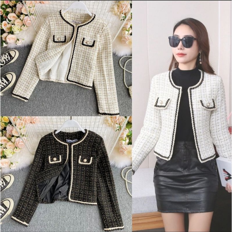 Harga VN MELANIE CROP TWEED BLAZER PREMIUM / OUTER VINTAGE KOREAN STYLE / WINTER TWEED BLAZER / CROP CARDI TWEED OUTWEAR