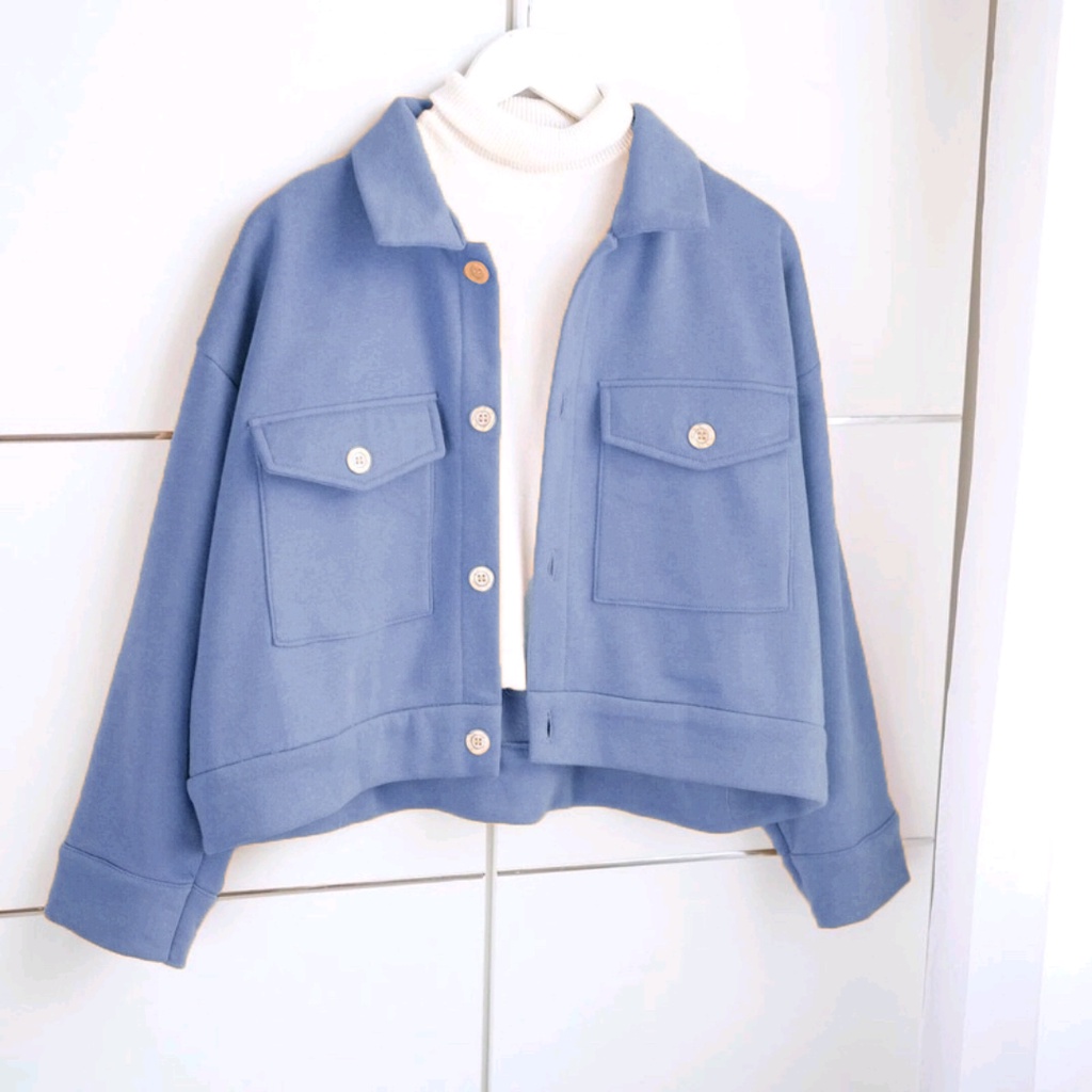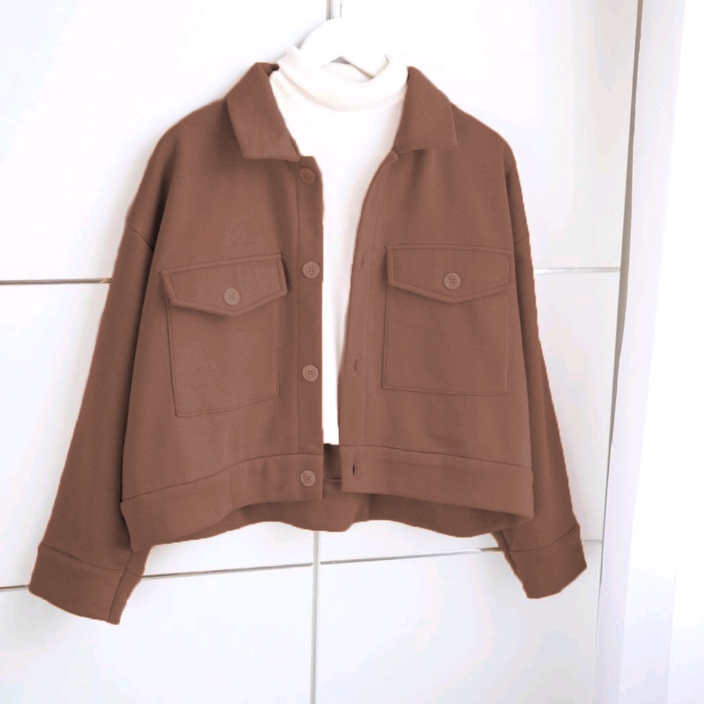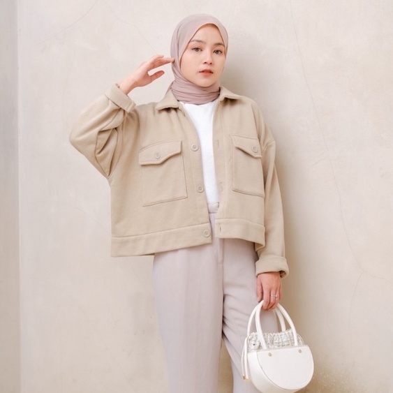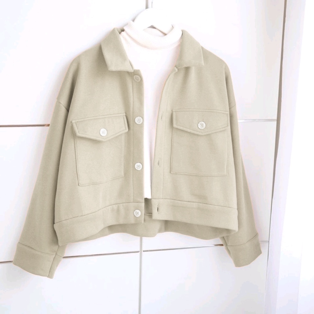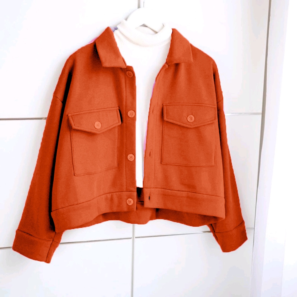 Vallina Outfit - Sally Jaket Wanita | Big Pocket Semi Parka Jacket Kanvas Korean Style