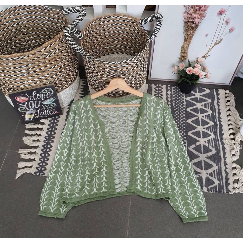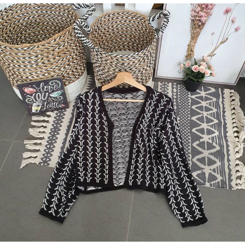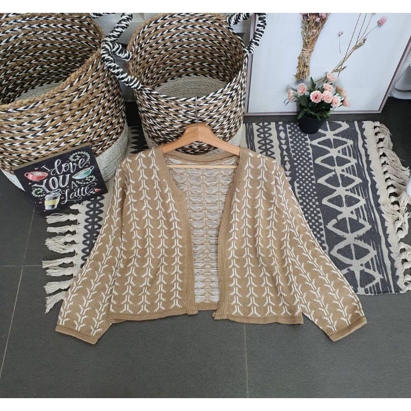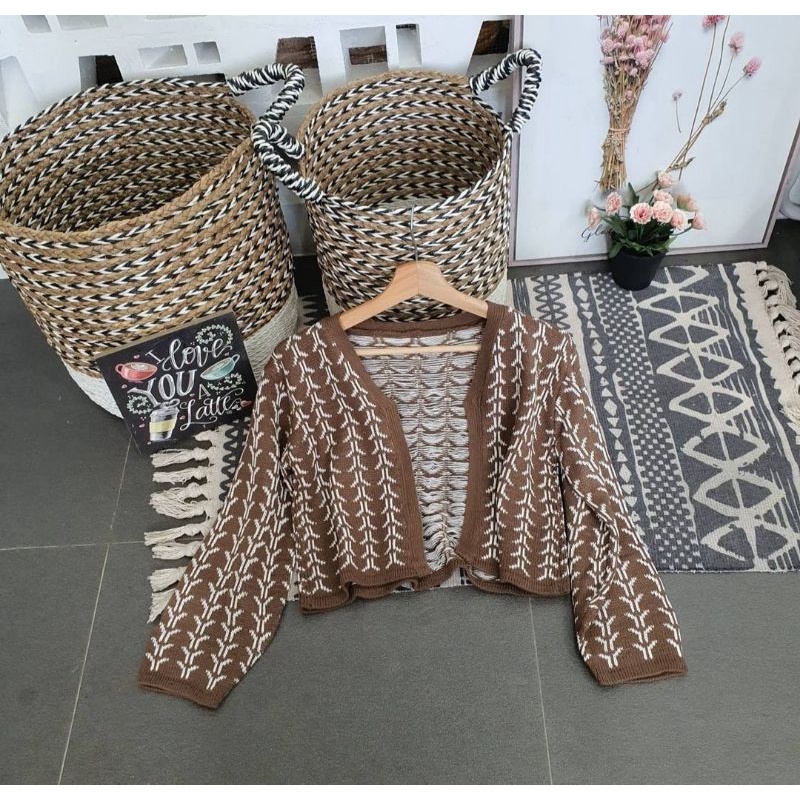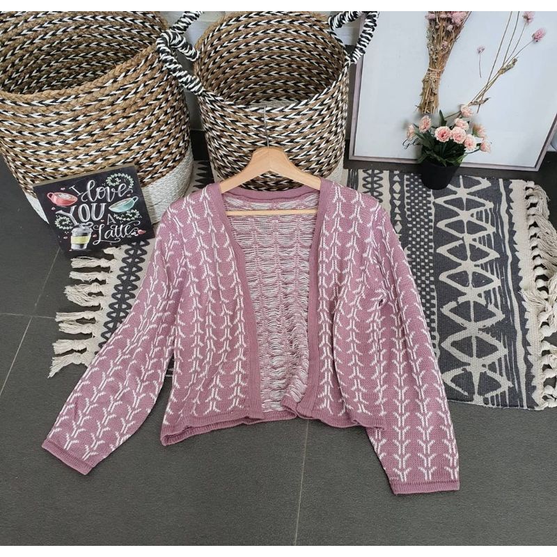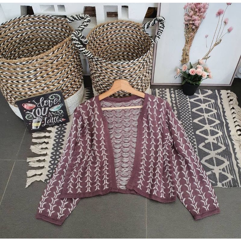Bisa Cod Outer Cardigan Knit Outwear Wanita Outfit Hijab Sweater Kardigan Flecee lengan Puffy